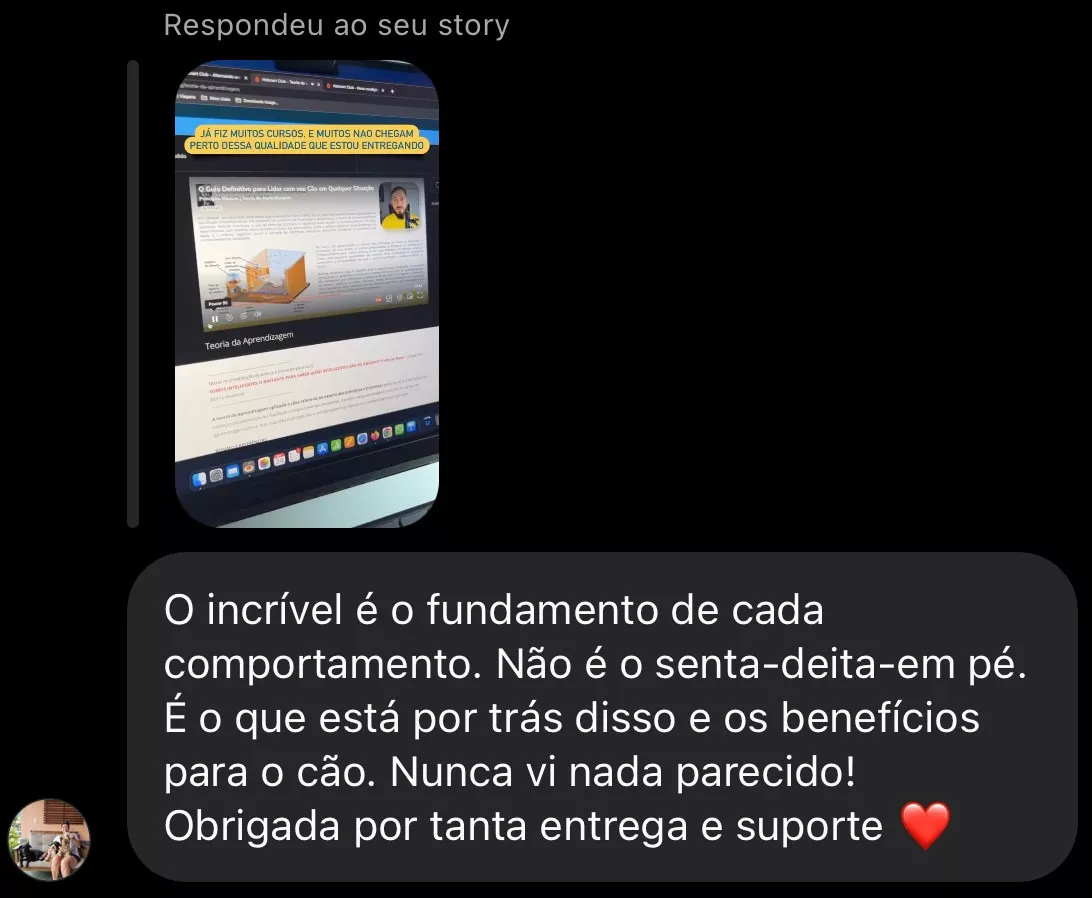 Todos os cães podem aprender, mas cada um tem seu ritmo. Se você estiver com dificuldades, nosso suporte exclusivo via Telegram, disponível no plano anual, poderá ajudar você a ajustar as técnicas e identificar a melhor abordagem para o seu cão.